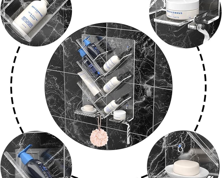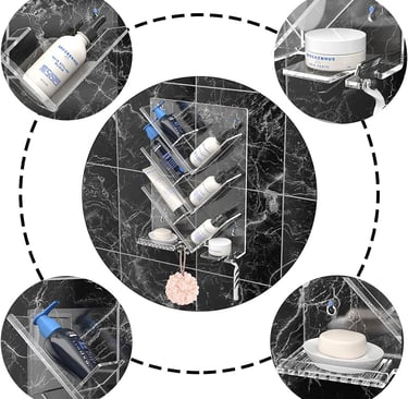 The AITEE Acrylic Shower Caddy Organizer is a modern wall-mounted bathroom organizer designed to keep shower essentials neatly arranged without drilling or wall damage. Built from durable acrylic material, this rustproof shelf provides practical storage while maintaining a clean, minimal look.