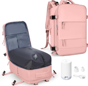 The Coowoz Vacuum Travel Backpack combines a vacuum compression system with a durable travel-friendly design to help maximize packing capacity. It includes a manual pump to remove excess air, reducing bulk and allowing more space for clothing and essentials. With multiple compartments, a laptop sleeve, a wet bag, and a shoe compartment, it is suitable for travel, college, outdoor activities, and daily use.