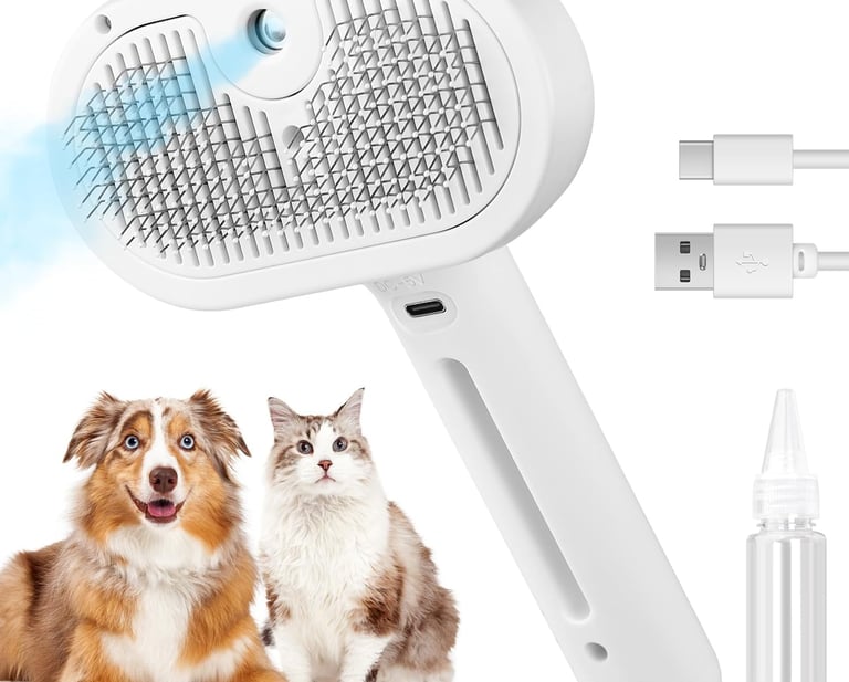 FourSeas 3-in-1 Pet Steam Brush – For Cats, Dogs, and Small Animals