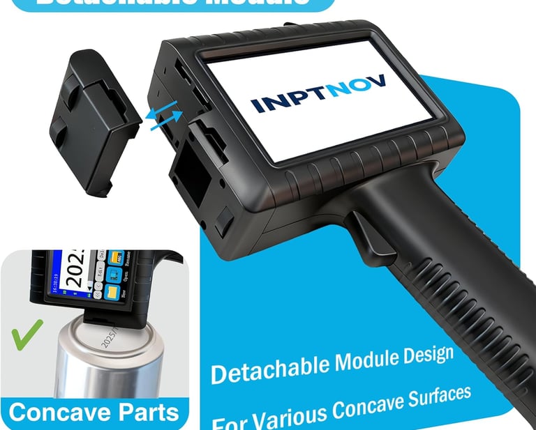 The INPTNOV Handheld Inkjet Printer is a portable coding solution designed for printing logos, batch numbers, expiration dates, serial numbers, barcodes, and QR codes on a wide range of materials. With a 0.5-inch print height, fast-drying ink, and long battery life, it is suitable for industrial, commercial, and small business use.
