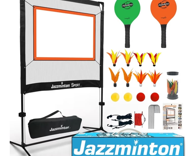 The Jazzminton-Sport – The Original Paddle Game with Net is an exciting paddle game designed for both indoor and outdoor play. Inspired by sports like Badminton, Pickleball, and Tennis, it combines fast rallies with simple rules to create an engaging activity for families, friends, and casual players. The set includes paddles, a net, and specially designed birdies that allow players to enjoy continuous rallies in backyards, beaches, parks, or even large indoor spaces. Its lightweight equipment and easy setup make it ideal for all ages while providing active entertainment without putting excessive stress on joints.