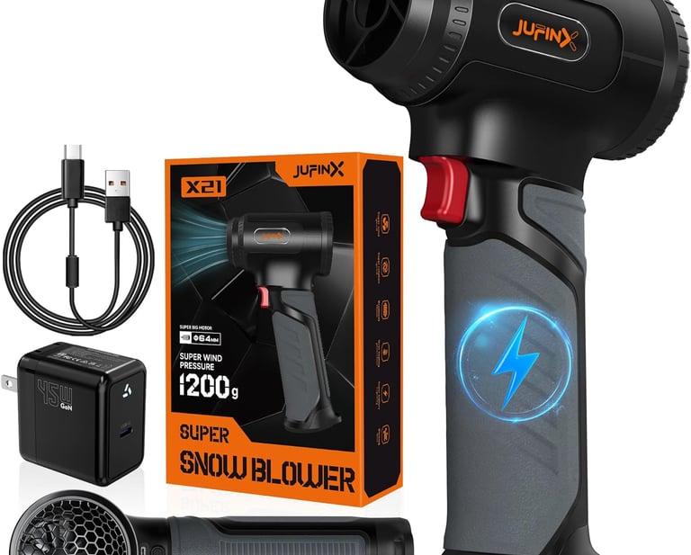 The JUFINX X21 Cordless Turbo Blower is a high-performance handheld air blower engineered for powerful, precise airflow in a compact and lightweight form. Designed for multi-purpose use, it delivers strong air pressure with stepless speed control, making it suitable for cleaning, drying, and light outdoor tasks in various environments.