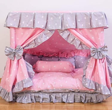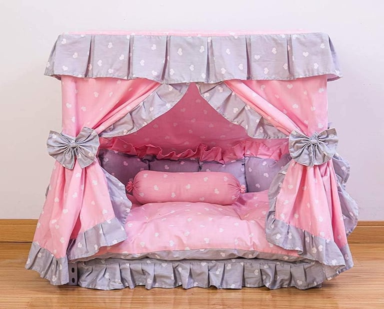 Kolachic Princess Pink Heart Dog House Bed – Handmade Cotton Pet Bed with Candy Pillow, Removable Cushion