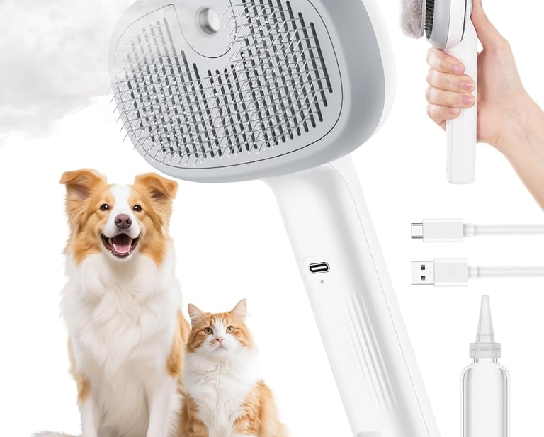The Pecute Steam Cat Brush is a versatile 3-in-1 grooming tool designed to simplify pet care for cats and dogs. Combining gentle mist technology, self-cleaning functionality, and a large water tank, this brush reduces shedding, removes loose hair, and keeps fur smooth and shiny. Perfect for pet owners who want stress-free, efficient grooming for all coat types.